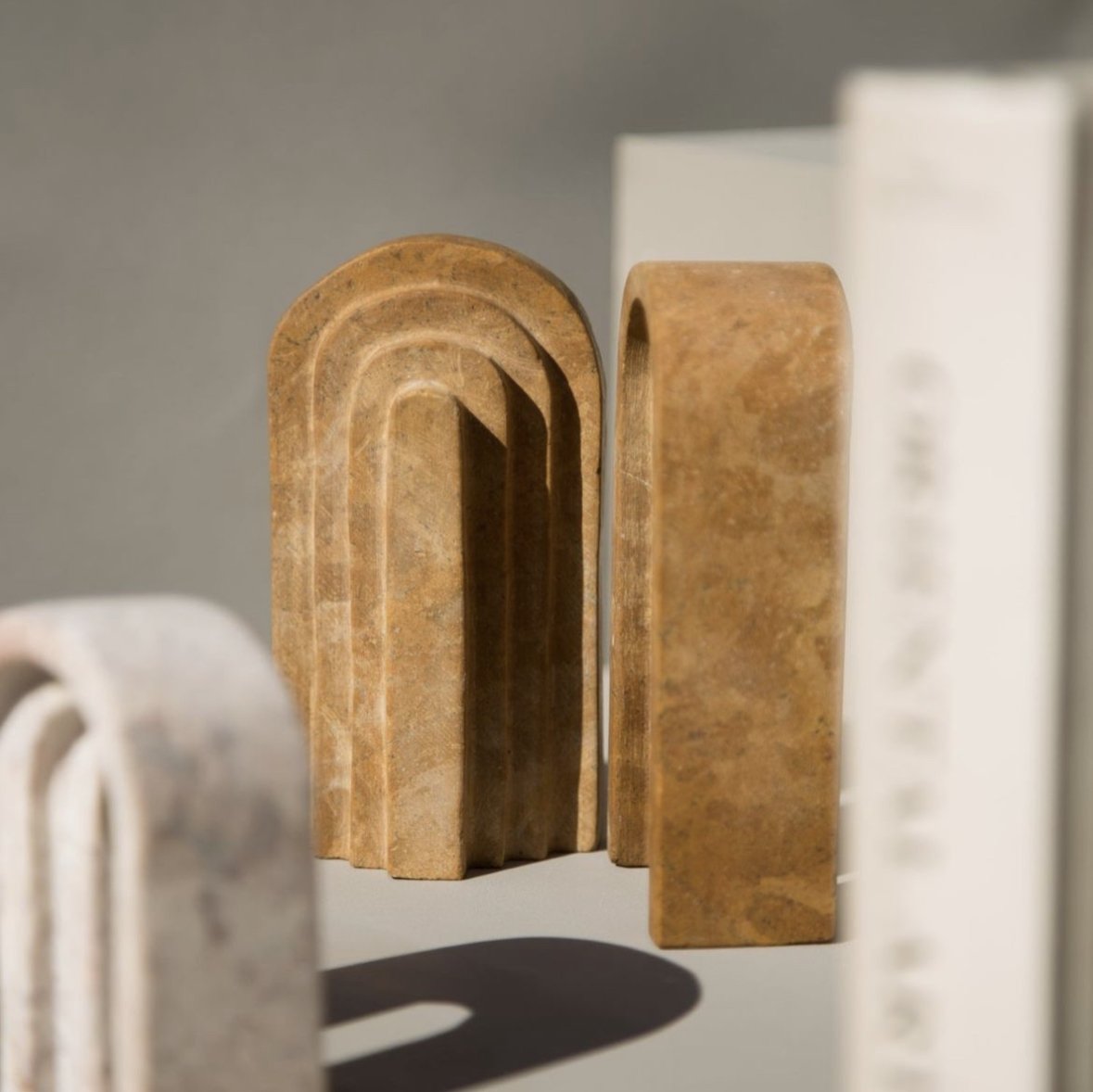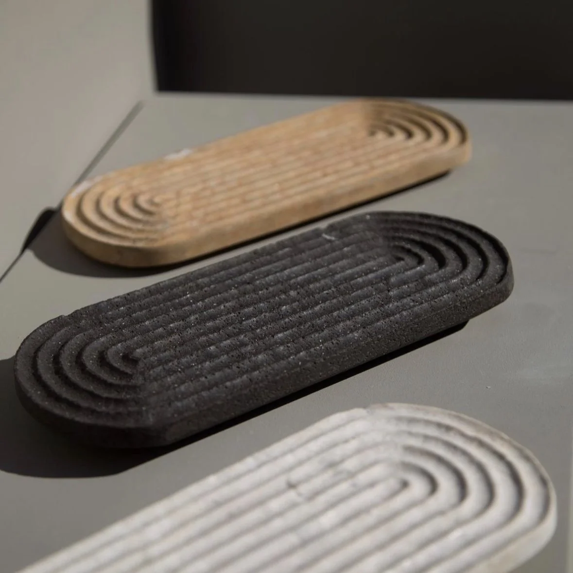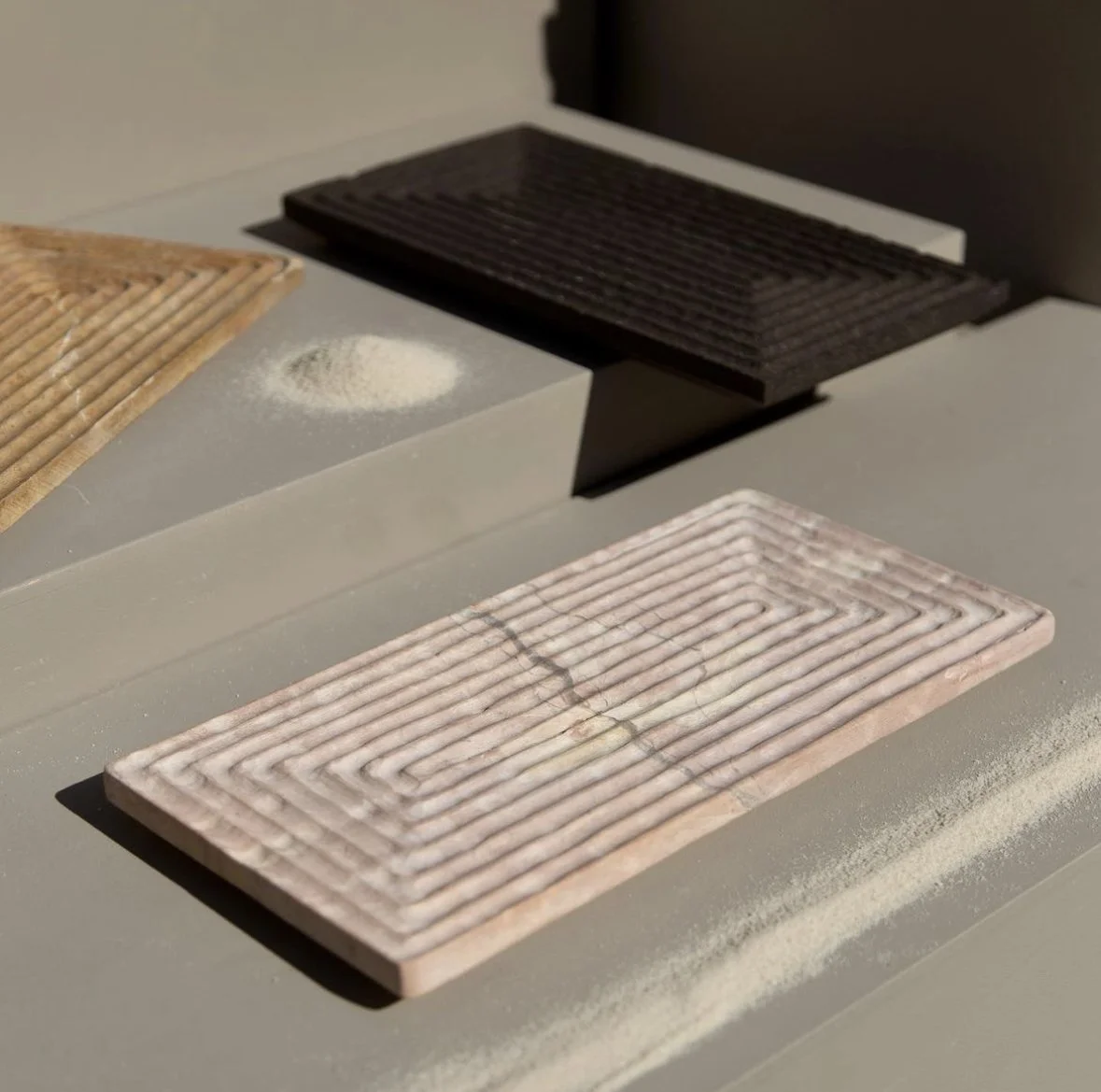 This collection of hand-carved stone objects was designed to showcase the flexibility of working with local stones, such as basalt, travertine and Ma’an limestone. The detailed stepped or fluted forms challenged the stone apprentices and artisans’ skills and creativity. The collection features items such as bookends, plates and candle holders.